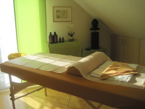 Der klimatisierte Massageraum ist liebevoll gestaltet und durchflutet von angenehmen Düften. Die spezielle Ayurveda-Massageliege ist beheizt und mit einer weichen Unterlage versehen so dass keine unangenehmen Druckpunkte entstehen.